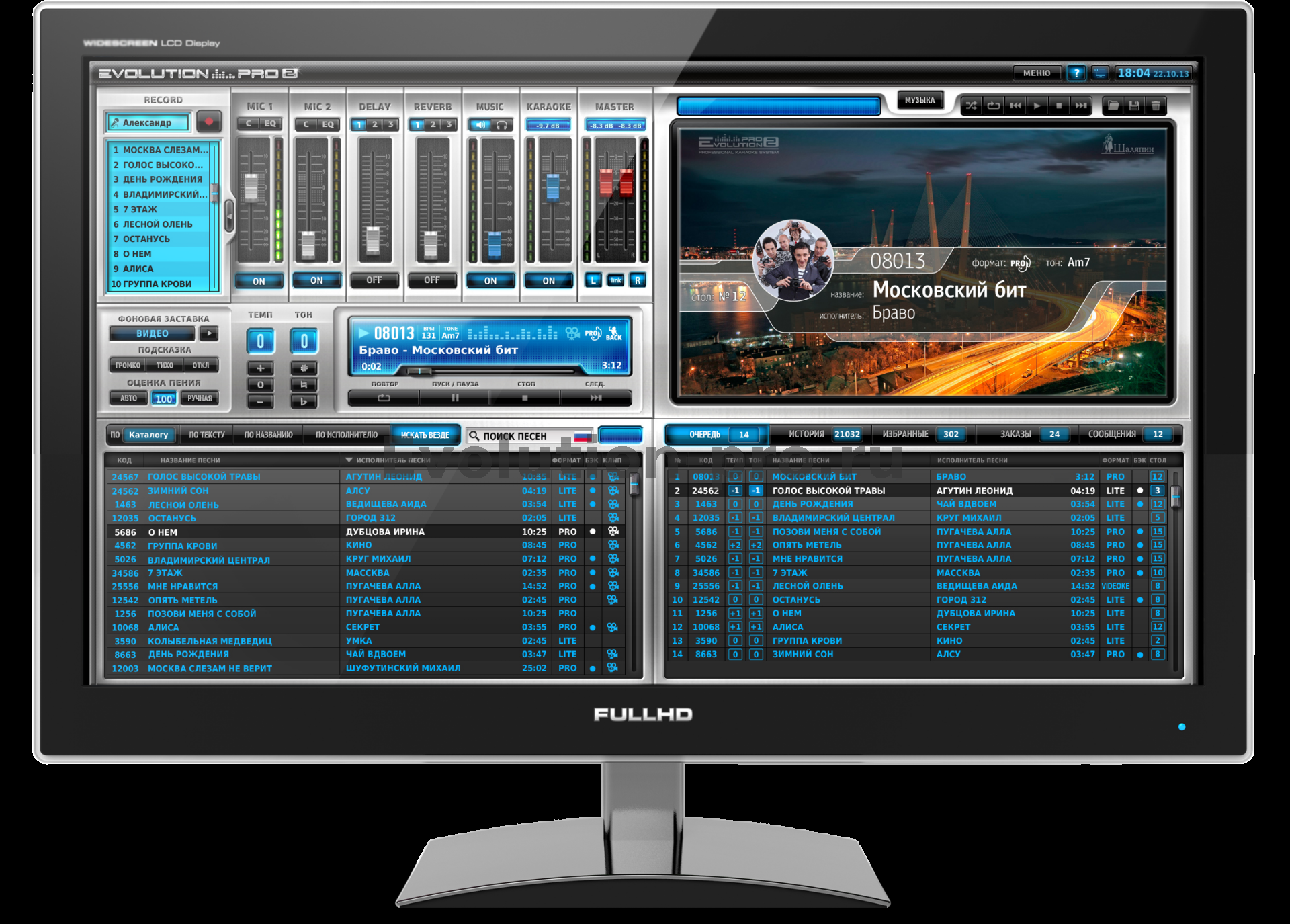 Evolution Pro2 - самая совершенная профессиональная караоке-система в Мире, которая создана для самых амбициозных задач вашего караоке-бизнеса. При её создании были учтены все пожелания звукорежиссёров и владельцев караоке-клубов. Для большого клуба.