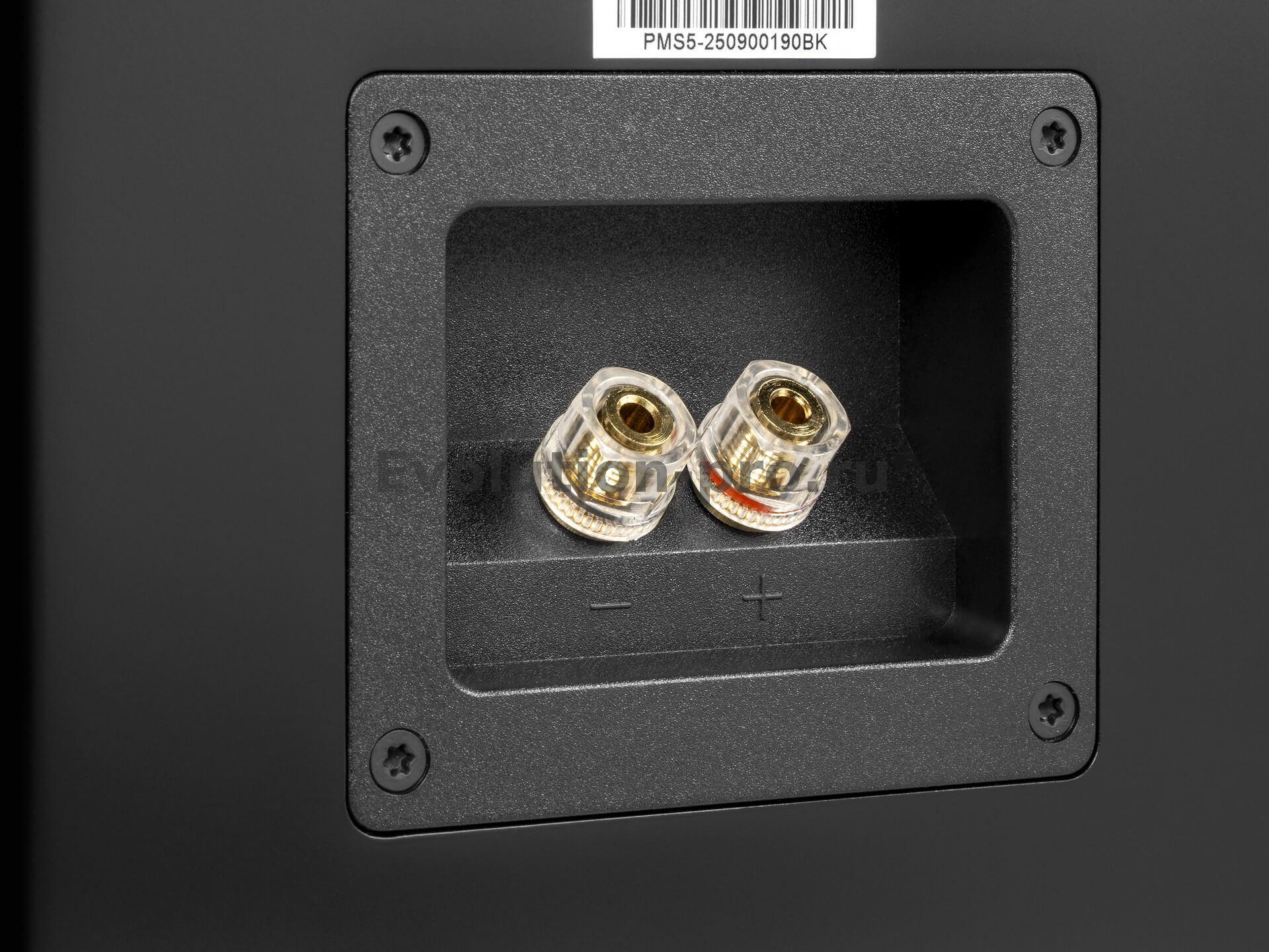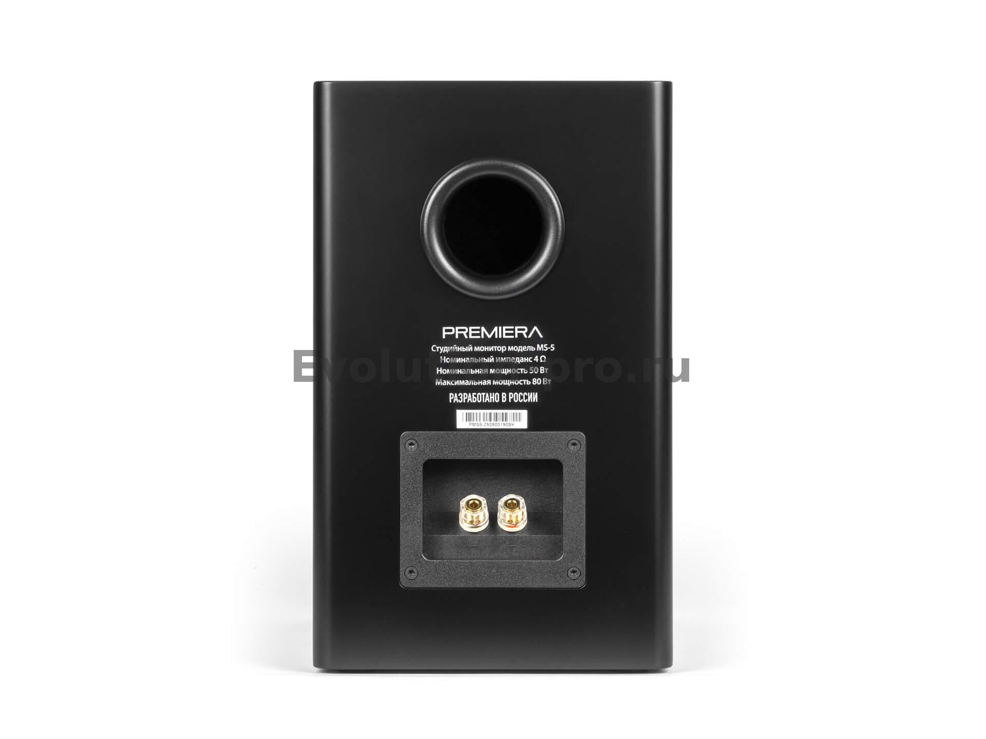 Акустические системы рассчитаны на усилители мощностью от 10 до 55 Вт (при сопротивлении 4 Ом) и обладают чувствительностью 81 дБ. Пиковая мощность достигает 80 Вт, что позволяет им держать удар в динамичных сценах. Винтовые клеммы на задней панели обеспечивают надёжное подключение, а тканевые решётки на магнитных креплениях (в цвет корпуса) защищают динамики, не нарушая эстетику. Premiera MS‑5 доступны в двух отделках — классическом чёрном или благородном белом лаке, а вес каждой колонки составляет 5,7 кг при размерах 180×297×274 мм.